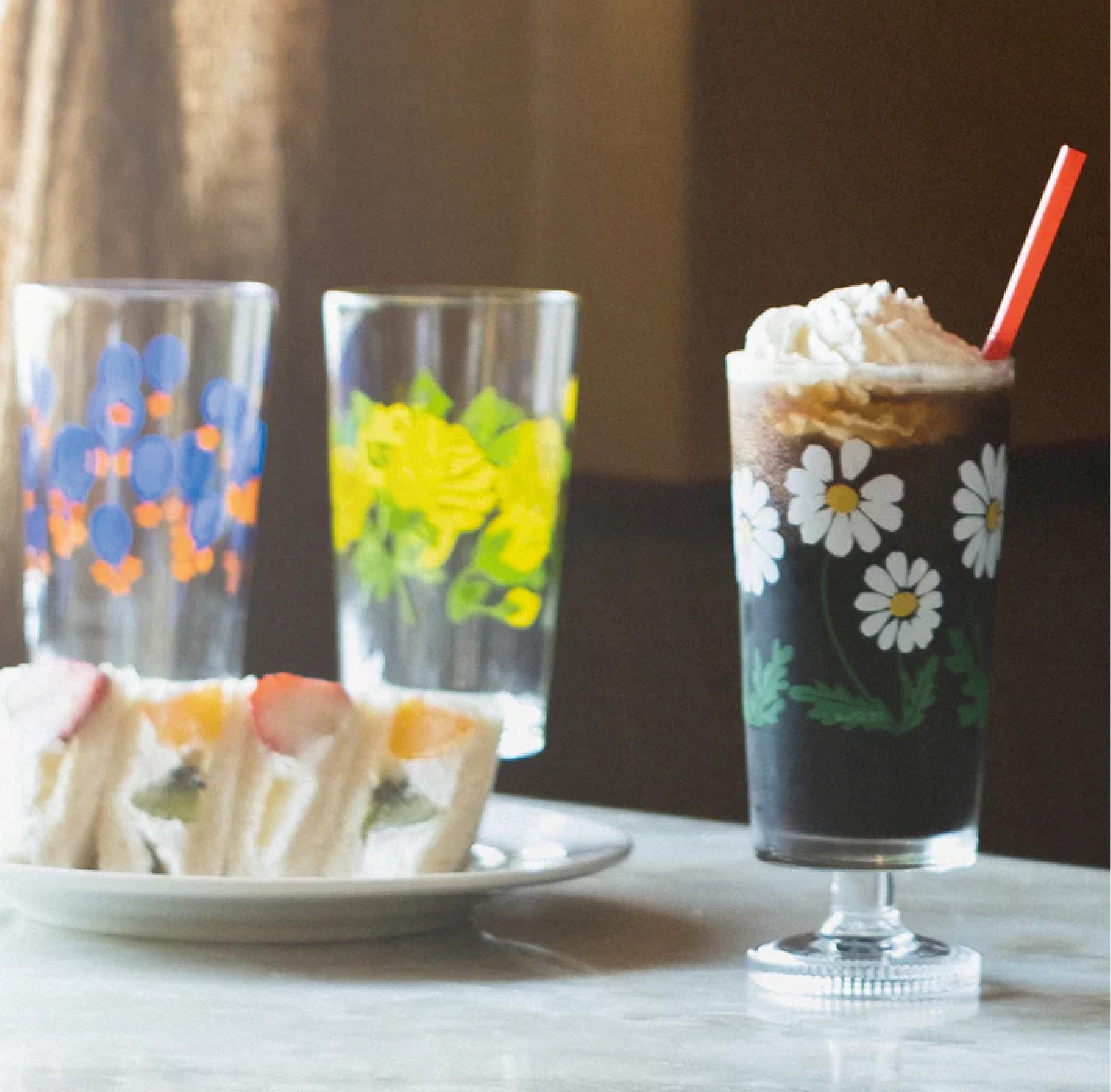 脚付きグラスはコップに短い脚をつけたような、ユニークなシルエットが特徴です。当時は家庭用グラスとして大変な人気がありました。